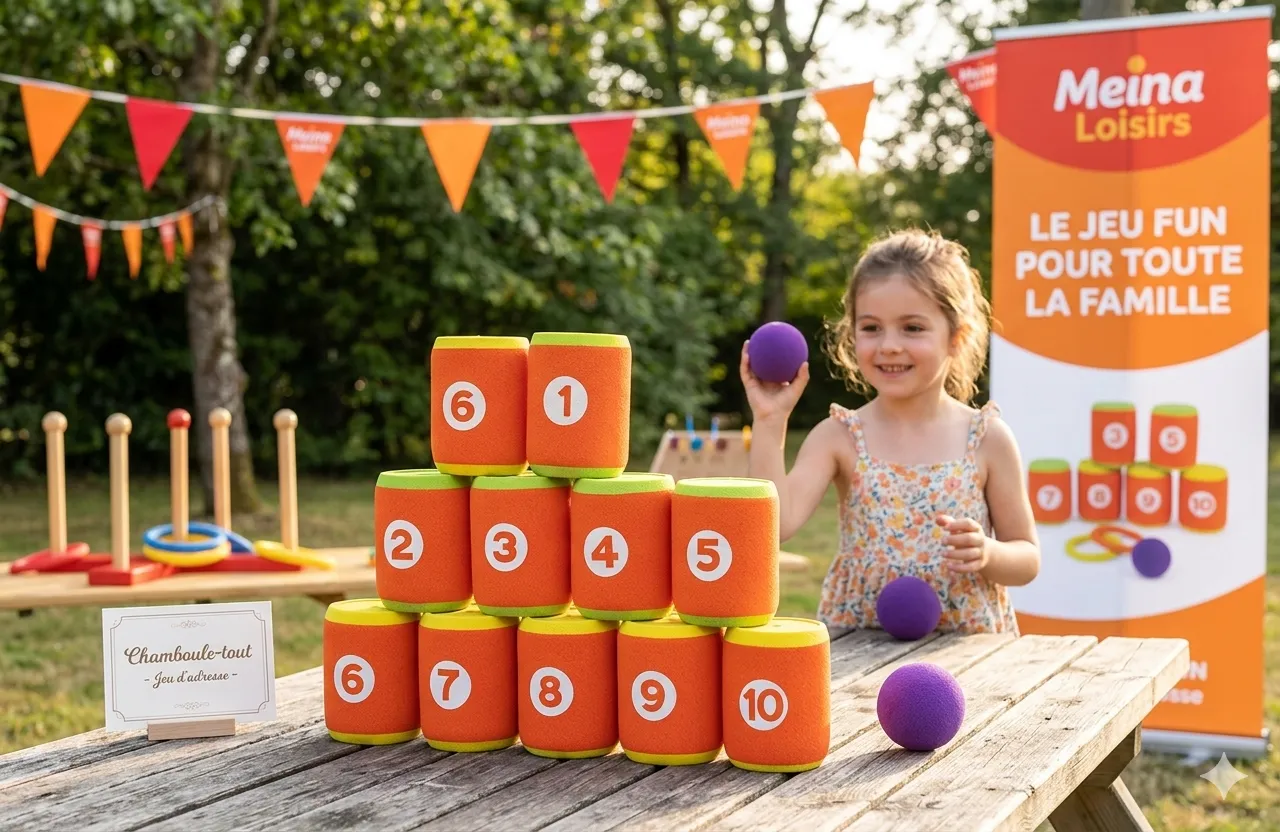 Chez Meina Loisirs, nous proposons la location de chamboule-tout et de nombreux autres jeux de kermesse, parfaits pour tous types d’événements.